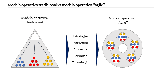 Esto significa optimizar el modelo operativo completo a través de la evolución de la estrategia, las estructuras, los procesos, las personas y la tecnología yendo a estructuras planas y fluidas construidas alrededor de equipos multifuncionales de alto rendimiento, instituyendo procesos de asignación de prioridades y recursos más frecuentes
